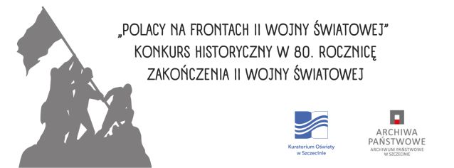 Zapraszamy do wzięcia udziału w konkursie historycznym pn. „Polacy na frontach II wojny światowej”, organizowanym przez Zachodniopomorskiego Kuratora Oświaty oraz dyrektora Archiwum Państwowego w Szczecinie z okazji 80. rocznicy zakończenia tego największego konfliktu w dziejach ludzkości.