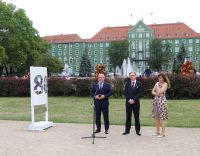 - odegranie Hejnału Miasta przez uczniów OSM I st. im. Prof. M. Jasińskiego, przemówienie, składanie kwiatów