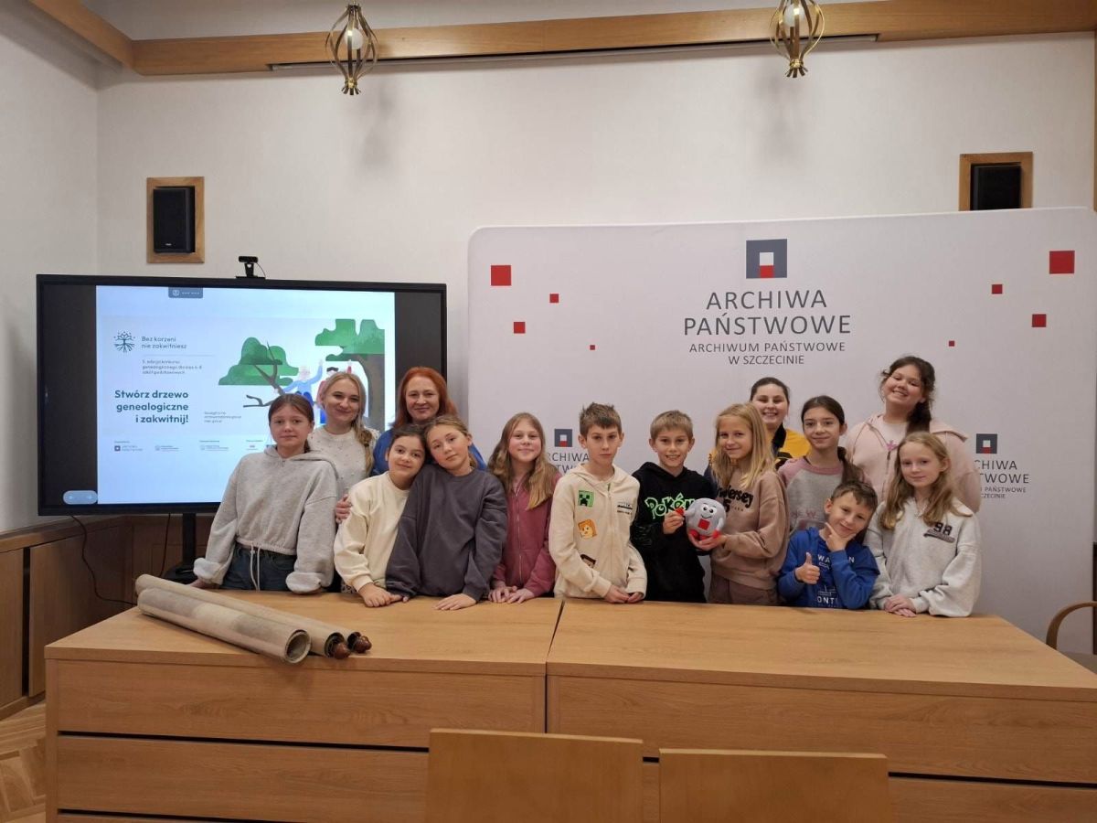Wraz z nowym rokiem szkolnym i kolejną edycją konkursu genealogicznego "Bez korzeni nie zakwitniesz. Moja Wielka i Mała Ojczyzna" wystartowaliśmy z ofertą warsztatów dla uczniów klas 4-8 szkoły podstawowej. 29 października 2025 r. naszymi gośćmi były dzieci ze Szkoły Podstawowej nr 24 im. Jana Brzechwy w Szczecinie.