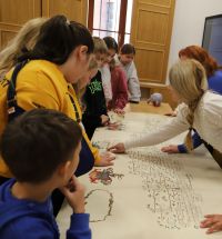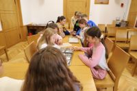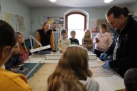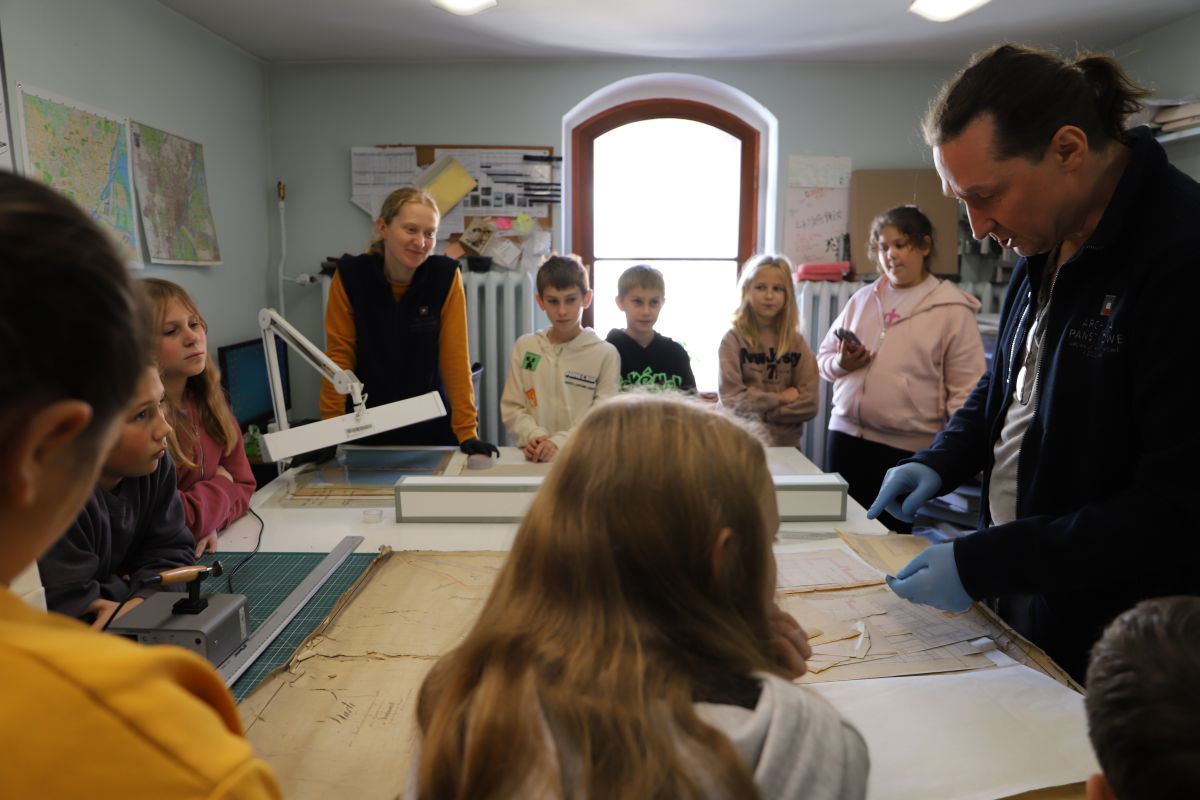 W pracowni konserwacji dzieci miały okazję poznać proste prace konserwatorskie, jak również spróbować swych sił przy pisaniu piórem.