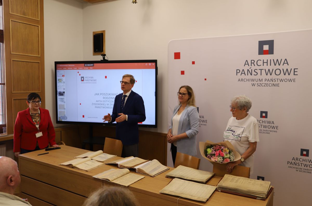 Gości przywitał dyrektor Archiwum dr hab. Krzysztof Kowalczyk, który krótko opowiedział o powstaniu napływowej społeczności żydowskiej w powojennym Szczecinie i o wymuszonej przez ówczesne władze emigracji z Polski, oraz Róża Król, przewodnicząca szczecińskiego Oddziału TSKŻ.