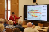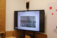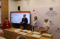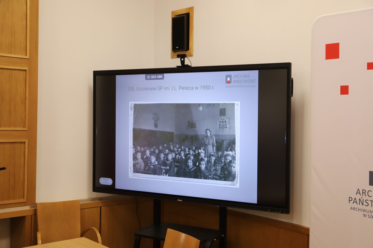 Następnie prelekcję wygłosiła mgr Anna Kandybowicz, która zarysowała tło historyczne – ruchy migracyjne po zakończeniu drugiej wojny światowej, w tym przesiedlenia polskich Żydów, po czym przybliżyła archiwalia z naszego zasobu odnoszące się do powojennej społeczności żydowskiej w Szczecinie, m.in. rejestry Państwowego Urzędu Repatriacyjnego, dokumentację szkół żydowskich (w tym nieodebrane świadectwa szkolne), akta dotyczące emigracji w latach 50. i po roku 1968.